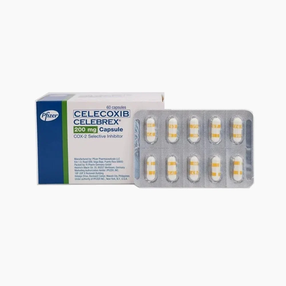 Celekoksib: Glavna učinkovina, ki zavira delovanje encima COX-2 in tako zmanjšuje bolečino ter vnetje.